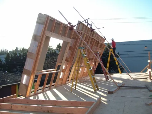 Most leading energy experts today recommend installing a lot more insulation than is common practice. This wall for a Passive House in Seattle will hold about a foot of insulation.