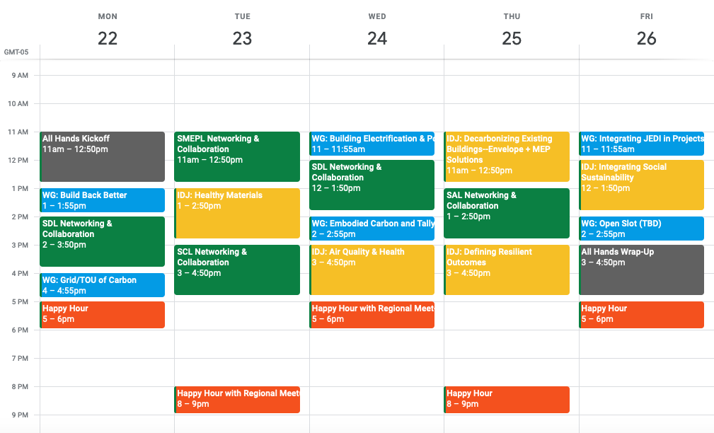 Join your peers and BuildingGreen February 22–26, 2021 for an all you can eat buffet week of networking, problem solving, and connecting with sustainability leaders within your industry and across the Peer Networks! During this week we will create a space for you to offer and receive support, exchange ideas and resources, and become stronger, more effective change agents. For those familiar with our in-person summits, this week of events will preserve some of the elements you’re used to, as well as adding new twists.