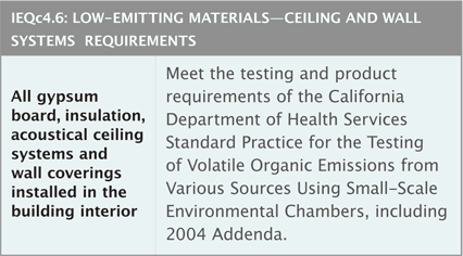 This credit requires all of your ceiling and wall systems to comply with a high standard for low indoor emissions, which can be difficult.