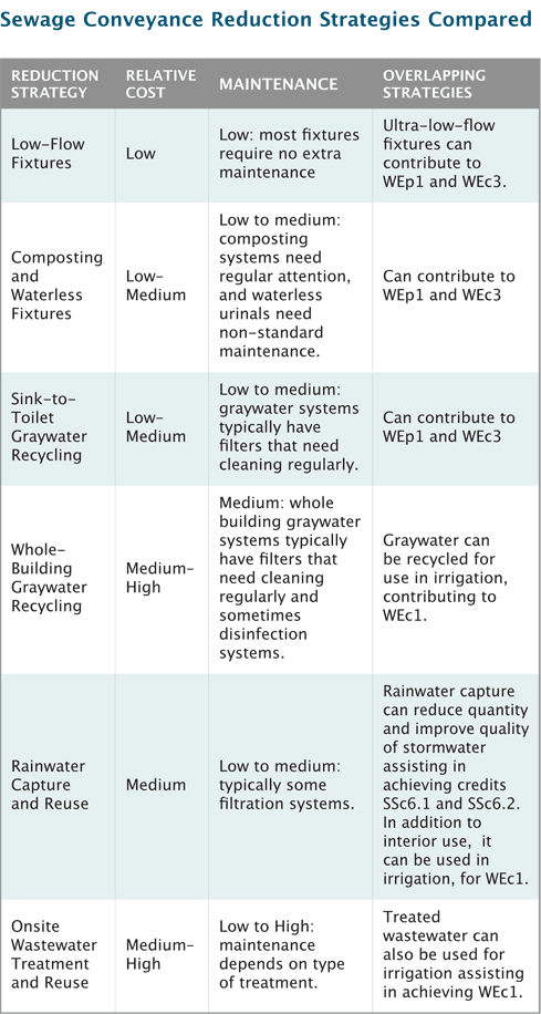 The intent of this credit is to reduce the amount of potable water used for flush fixtures and to minimize the amount of wastewater conveyed to the municipal system. For credit compliance, you have two options: