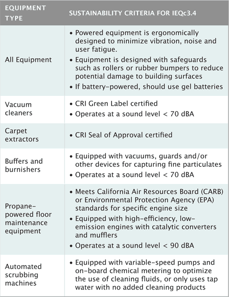 - How obsolete is your current inventory of cleaning equipment? Have there been regular complaints about any particular pieces of equipment from either maintenance personnel or occupants? If obsolete equipment needs to be replaced anyway, that can present a good opportunity to earn this credit.