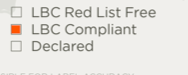 - There are three status options on a Declare label: LBC Red List Free, LBC Red List Approved, and Declared.
