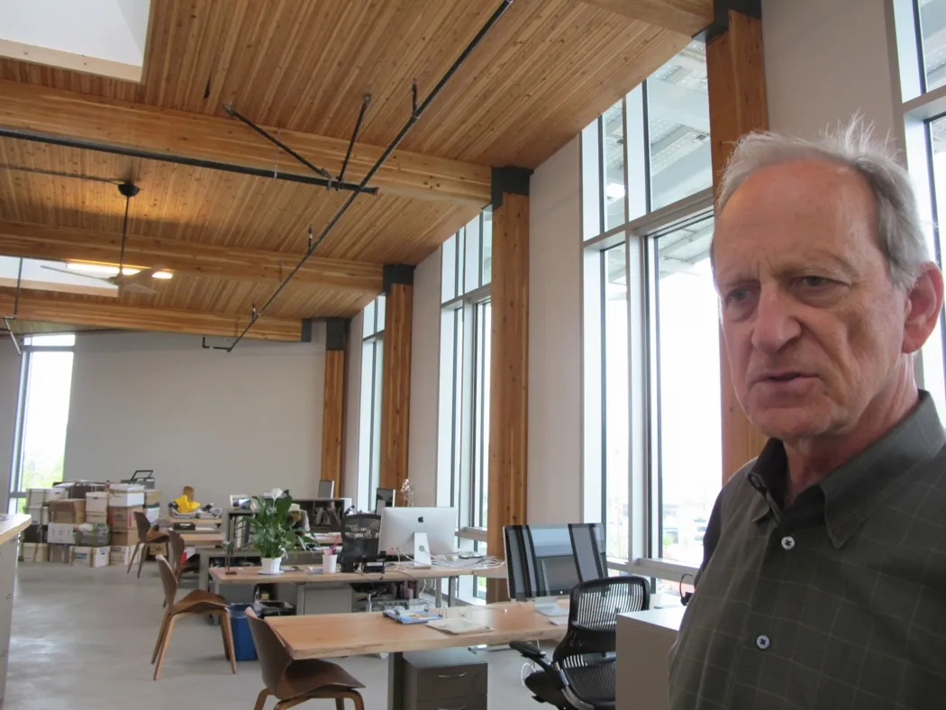 Denis Hayes, president of the Bullitt Foundation, explaining features of the building.