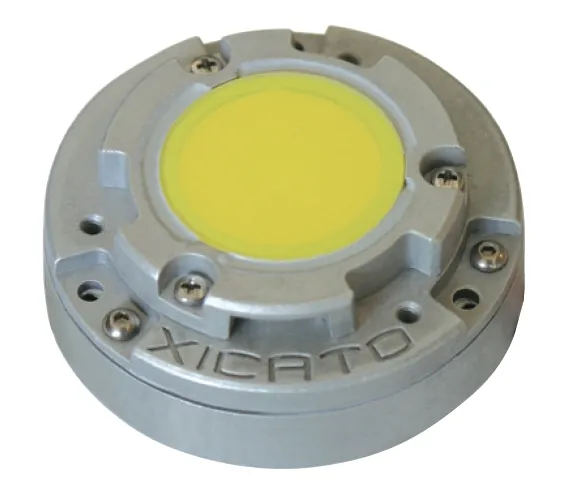 The second advance pioneered by Xicato is "remote phosphor" technology in which the phosphors are separated from the actual LED light sources. This approach allows the company to use fairly standard, off-the-shelf LEDs (from quality LED manufacturers Philips, Cree, and Osram), skip the laborious "binning" process in which light output of individual LEDs is color-matched, and generate highly consistent white light through the phosphor design.